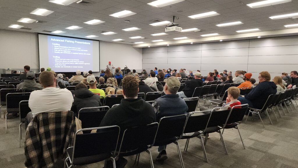 Captain Greg held his Beyond the Basics seminar on Saturday afternoon during the Wisconsin Fishing Expo— and the room was packed! Youth, families, and adults filled the seats, all eager to learn the skills and equipment needed to take their fishing to the next level.