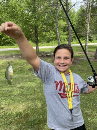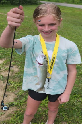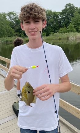 Following the ride, it was time to fish! We started with a lesson on how to rig up a fishing pole for slip bobber fishing, including how to properly set the depth and understand how the bobber system works. Our first fishing stop was the kids’ pond, where the group practiced their skills and learned about various fish species. We then made our way to the lake itself, where some participants were lucky enough to catch bass and other sizable fish, wrapping up a fantastic first session.
