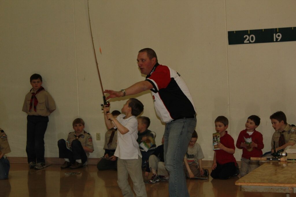 Yesterday Tim Euting, Bill Van Ornum, Patti Parcell and myself educated Pack 3045/3074’s on fishing!! Besides the Cub Scouts, Fox 11 news attended. Tim taught the scouts on fishing combos, casting and setting the hook. Bill taught the scouts on live and artifical bait, how to hook the bait, crank baits and how to tie a palomar and clinch know. I taught the scouts about; parts of a fish, fish identification, safety, AIS Message and the different types of fishing presenations. The Cub Scouts should be well on there way to getting thier fishing belt loop or fishing pin. Thanks to the sponsors as most scouts went home with a fishing item. Patti was instrumental in making this a huge success.