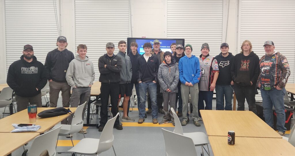 Captain Greg of Learn 2 Fish With Us presented his Icing Panfish On Your Local Lakes to the North Fond du Lac High School Fishing Team on Wednesday, January 15th.  Students and coaches said the seminar was so informative on the skills and equipment needed to catch panfish, which is so important to them when fishing Wisconsin Interscholastic Fishing Association fishing tournaments.   They learned about skills and equipment that can make them a better ice fishing angler.  Many of the students plan on putting some the skills to test this weekend.  After the seminar, students and coaches had many questions to ask Captain Greg.   Thanks to our great sponsors we had ice fishing gear to give to the team!!