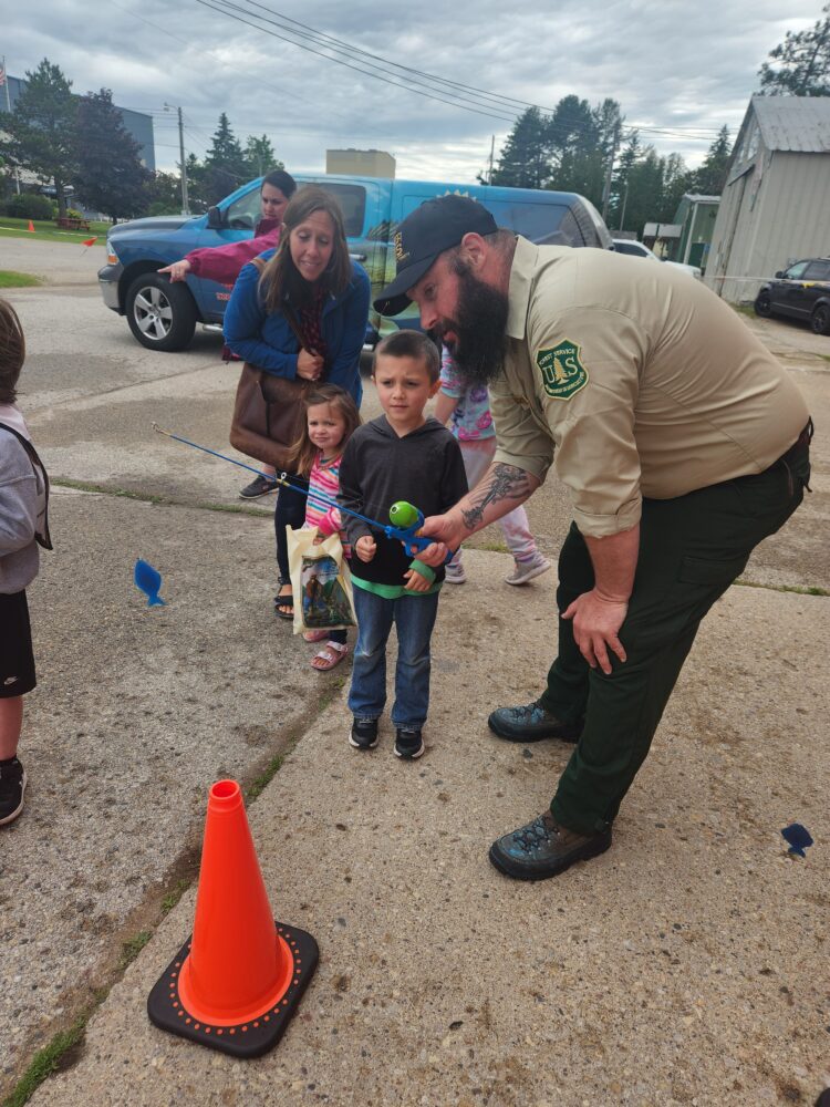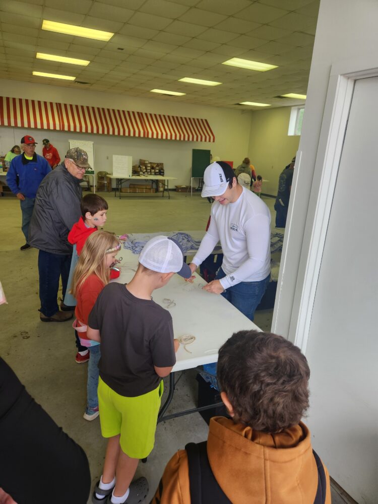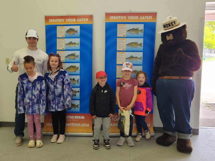 Learn 2 Fish With Us hosted a fishing education booth, where youth and parents could learn to cast safely and accurately, tie a Palomar and Clinch knot, fish identification and safety while fishing. A huge thank you goes to US Forest Service volunteers and Jake Munn for their help in the Learn 2 Fish With Us hands on fishing educational booth. Youth went fishing in the stocked pond where many fish were caught. Other educational opportunities at Kids Fishing Day was BB gun shooting, shooting a bow, aquatic invasive species, meeting Smokey the bear and so much more!! After the youth attended all the stations, it was time for lunch which included hot dogs, chips and a soda!! Youth received a fishing related prize which included fishing combos, nets and many other fishing goods.