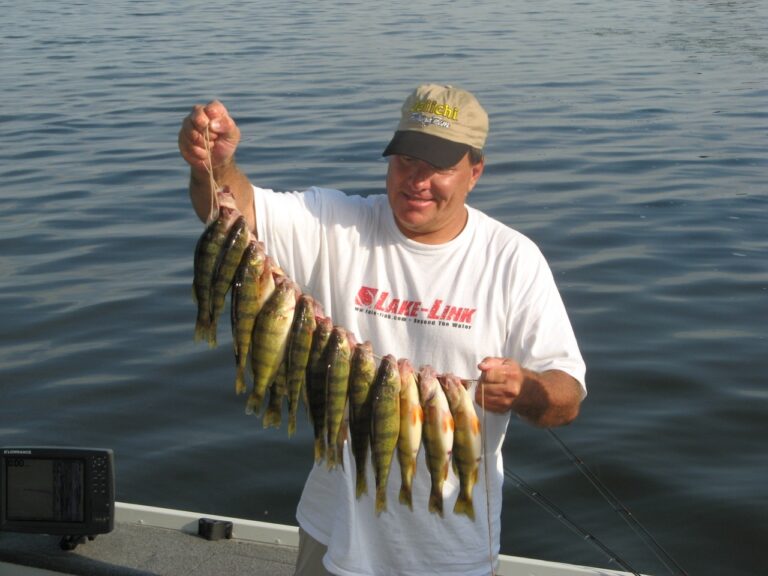 This weekend I had Ted Peck in my boat to write a Lake Winnebago perch fishing article. We did not hit the water until 1 PM but in two hours we had a nice mess of fish. The perch ranged from 9 to 11 inches. We were dead sticking using crawlers abd were hanging just