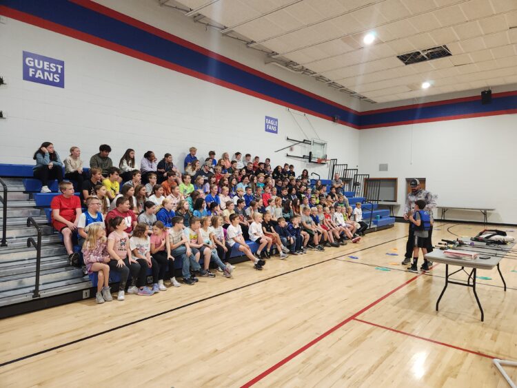 After the lessons, students were divided into small groups and rotated through hands-on stations. They learned how to cast safely and accurately, how to tie fishing knots, and for the older group, they even participated in fish identification. Meanwhile, the younger students enjoyed a special reading of “Walter the Willy Walleye.”