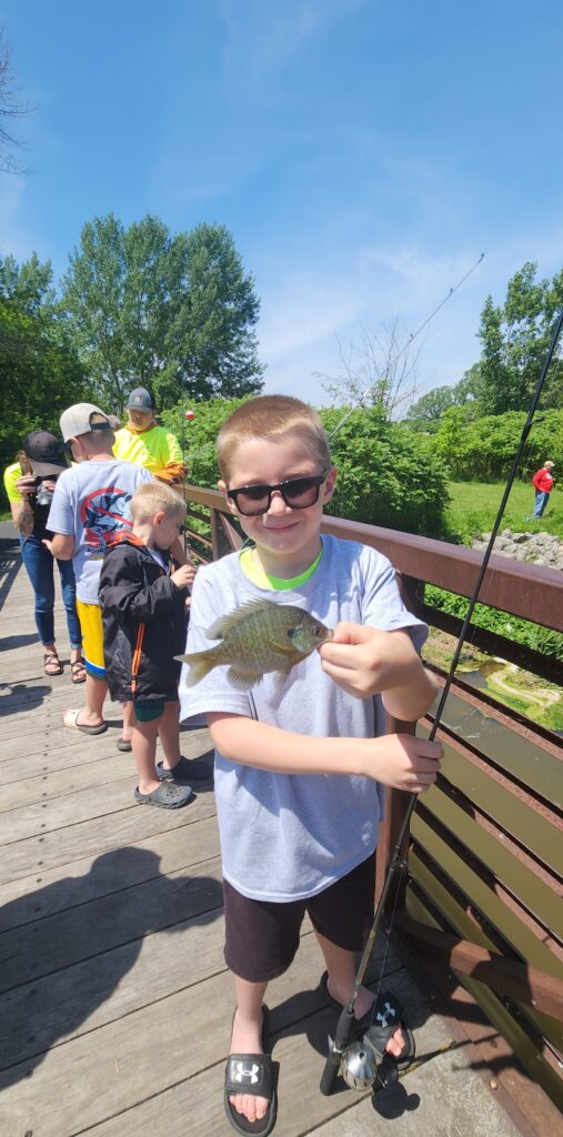 After the Fishing Basics seminar, families went fishing in the Butterfly pond utilizing their newly rigged fishing combo. Fishing was challenging, but, some rainbow trout, perch, bluegills and some pumpkinseeds were caught. These youth and families are looking forward to the rest of summer as they all plan on getting out fishing!!