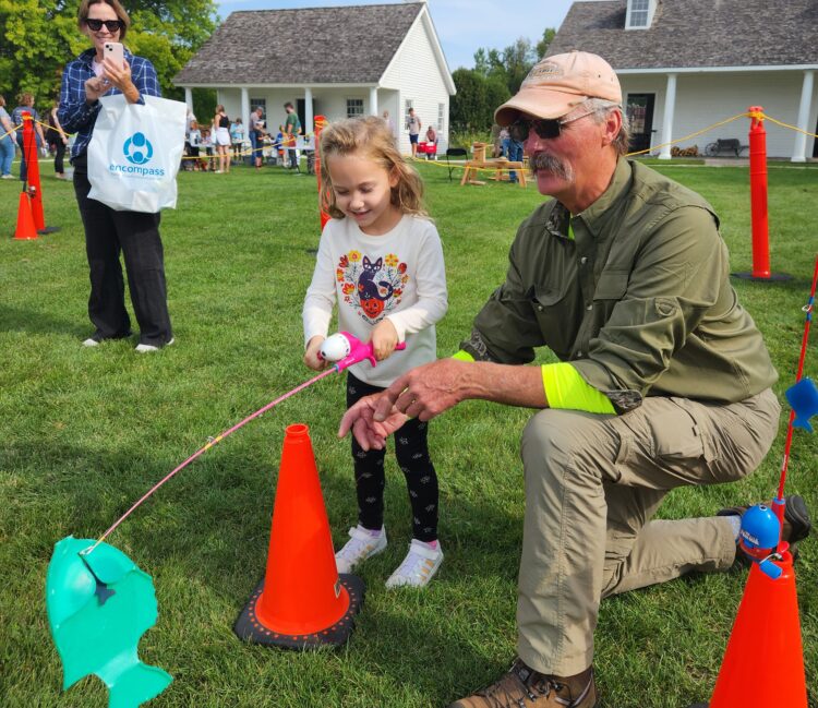 Learn 2 Fish With Us and our volunteers educated youth on vital skills needed to begin fishing during The Big Event, which was held Saturday, September 16th at Heritage Hills State Park in Green Bay, Wisconsin. The Big Event is a fundraiser for Encompass, which as programs to promote a healthy body and healthy mind for young children. Learn 2 Fish With Us believes that fishing promotes a promote a healthy body and healthy mind for all!! Captain Greg Karch and his crew taught youth how to cast safely and accurately, fish identification and how to tie a Clinch and Palomar knot in Learn 2 Fish With Us fishing education booth. All skills that are so vital when fishing as a family. You should of seen and heard the excitement when a youth would catch a Backyard Bass!! We had over five hundred people that entered the fishing educational booth.
