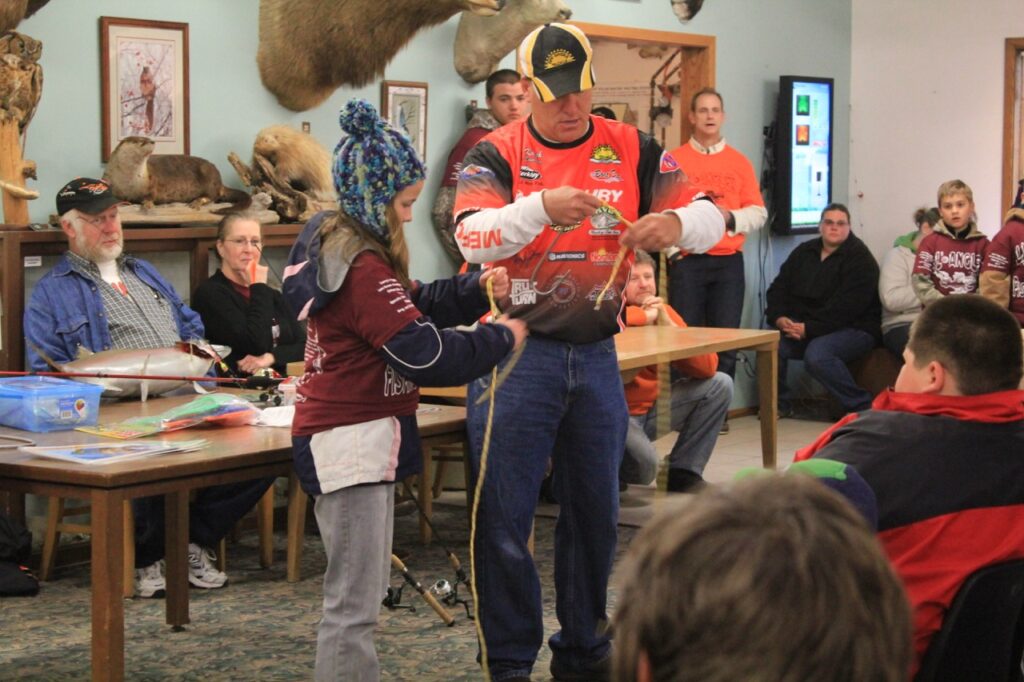 On Saturday, Greg kicked off the 2013 Lil Angler fishing event with his ‘Fishing Basics’ seminar in Kaukauna, Wisconsin. It was a brisk day but everyone was attentive as throughout the day I had many questions from both youth and parents on fishing and the seminar. After my seminar the kids were to fish but with the rain and cold the fishing was canceled. The families enjoyed lunch and then after that all the kids received a prize. The group that runs the Lil’ Angler fishing group is a great group of people and made it a very special day for the lil Anglers!!!