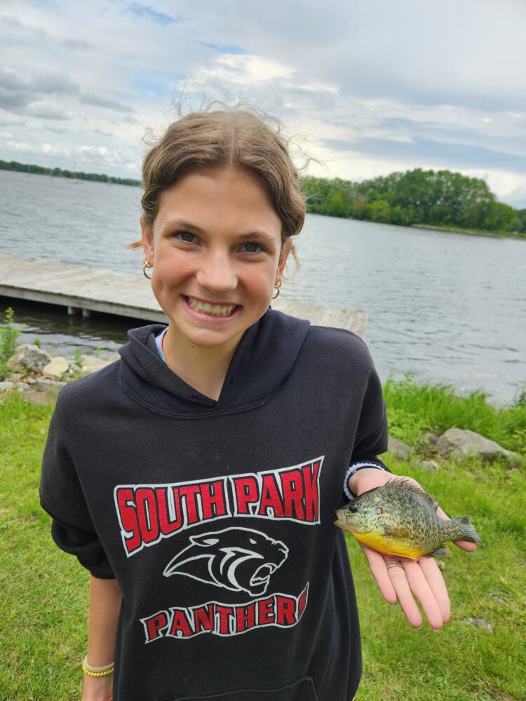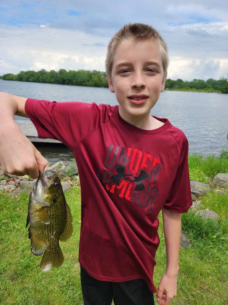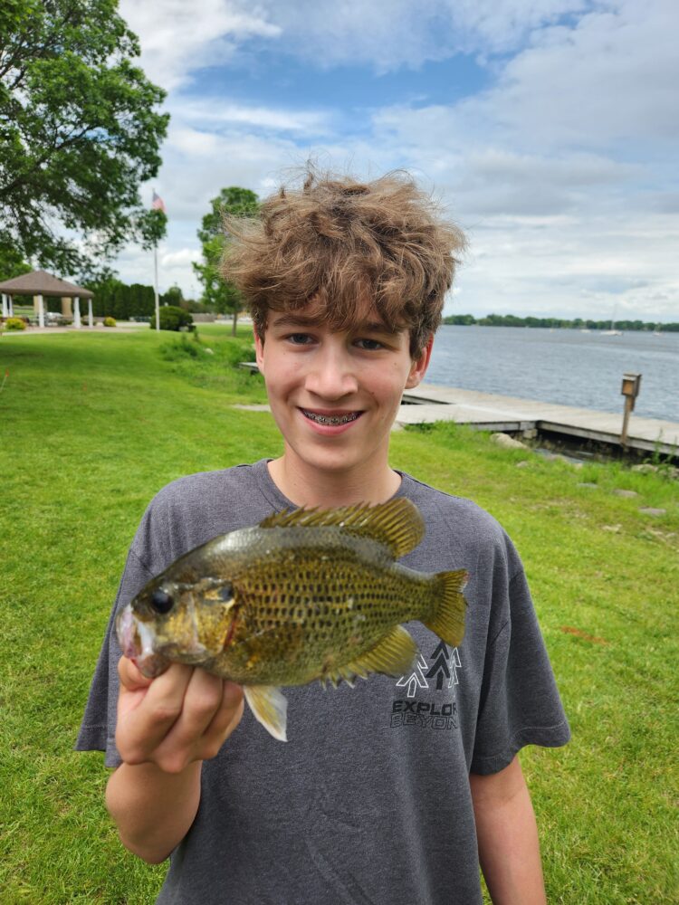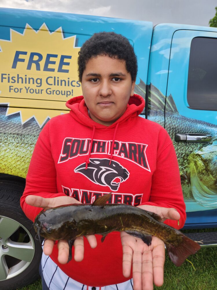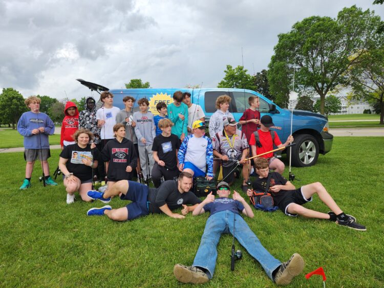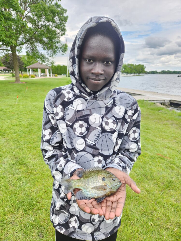 Today, Tuesday May 28th was the final day for the South Park Middle School Fish Camp, where Captain Greg of Learn 2 Fish With Us hosted fishing at Menominee Park. Fish Camp meet monthly where they learned about the skills and equipment needed to begin fishing. The previous months session, students were given a fishing combo along with items needed to rig thier fishing and they rigged them. Today was the day hstudents used thier newly rigged fishing combo!! The afternoon started out slow but picked up, where many fish were caught. Learn 2 Fish With Us had a soft-sided tackle bag to the student that caught the largest fish. Jacob was leading with a 14.5 inch Largemouth Bass, but at the end of the afternoon, Mason caught a 15.25 inch Largemouth Bass to win the tackle bag. Other’s that caught fish were Braden withh a 12.5 inch bullhed, Cedric with a 9.5 inch Rockbass, Awok with a 7.5 inch Bluegill, Carson with a 6.5 inch perch, along with Archer, Cash, Jacob. Ava all catching fish!! It was a great fishing day!!