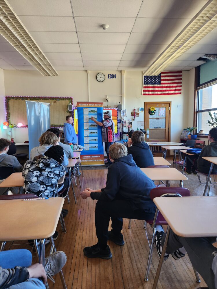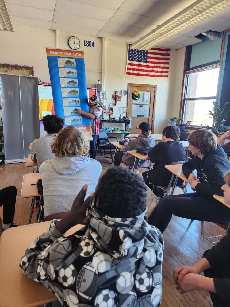 Today we held the second session of Fish Club at South Park Middle School. Students learned how to identify the different fish, what is a game fish, where do they reside in Bago, when do they spawn, our state fish and so much more. Each student learned they would receive a spin cast or spinning combo and in the next session will rig their fishing combo. The final session we will go fishing in May!! We could not provide this education or fishing goodies without our great sponsors and donors!!