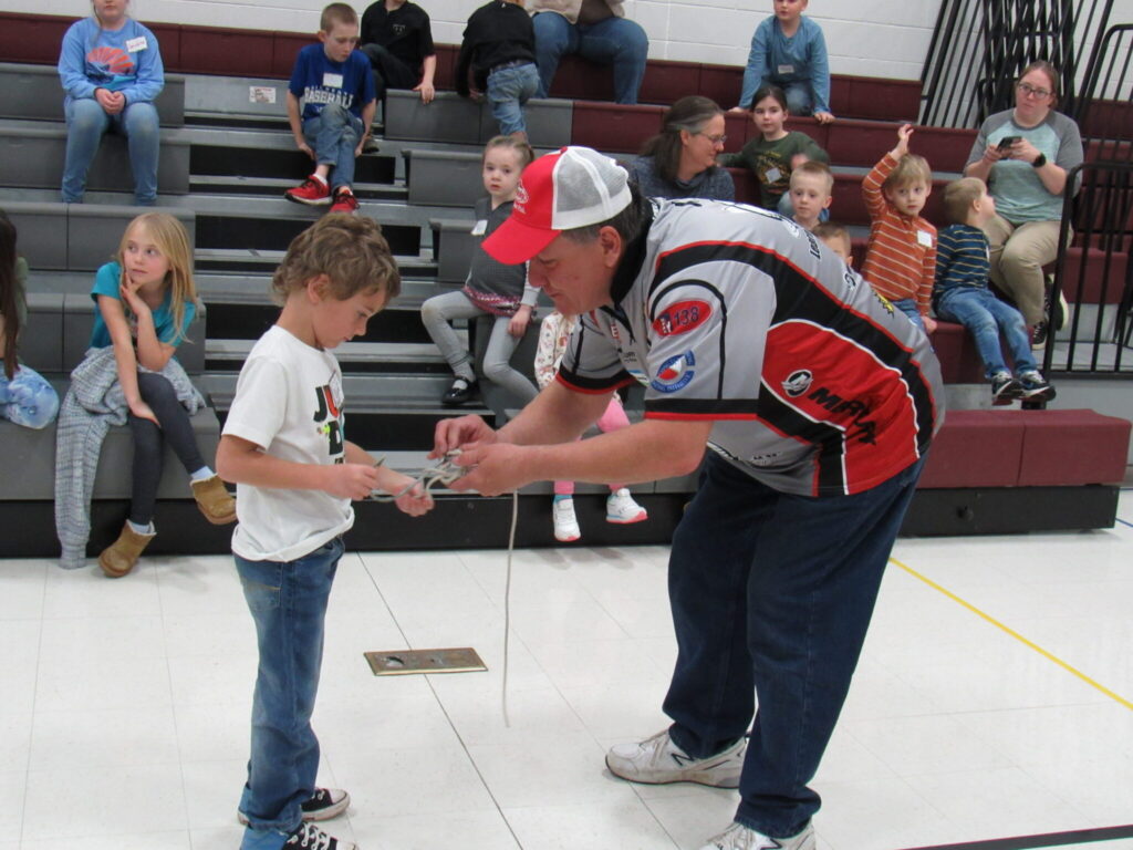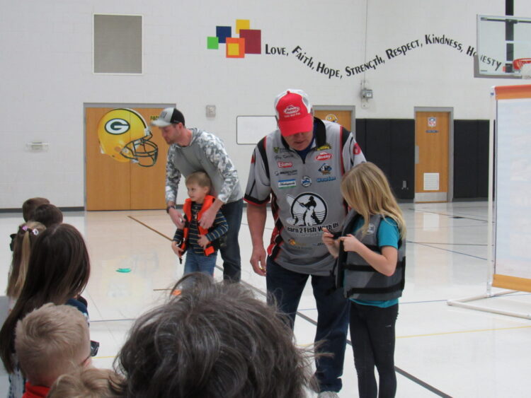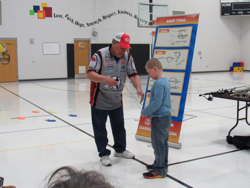 On March 13th, Captain Greg of Learn 2 Fish With Us hosted a fishing clinics for Kindergarten through third grade. These students were eagle to learn the skills and equipment needed to begin fishing as we are so close to the ice leaving the lakes. Students learned safety while fishing, how to use a spin cast and spinning combo, how to cast safely and accurately, tying knots, simple fishing presentations, live and artificial bait, fish identification, keeping a fish log and Clean Drain Dry. The students loved working with Captain Greg and so look forward to going fishing. Each student received a Invader Crusader shirt, fishing edcuation book and thanks to Zack a fishing combo with casting plug!! Let’s go fishing!!