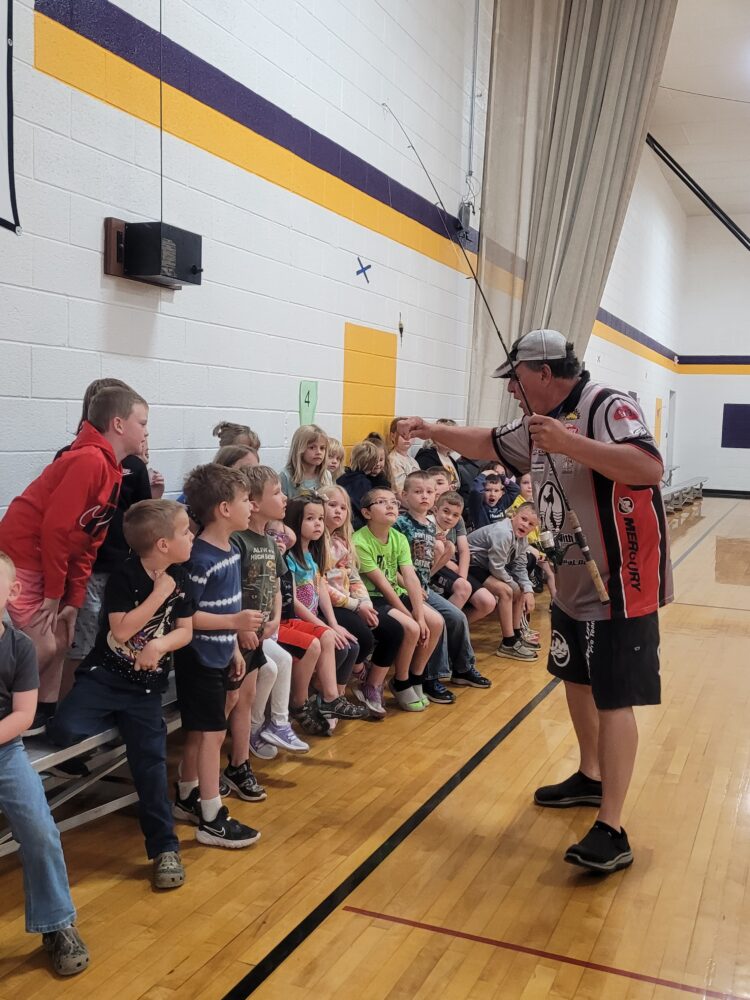 It’s because Captain Greg of Learn 2 Fish with Us and National Professional Anglers Association (NPAA) attended Tigerton’s Summer School, with his Fishing program. On Wednesday, June 11h, Captain Greg traveled to Tigerton and taught K4 through fifth graders the fishing basics. One seminar was for K4 through second grade and the second seminar was for third through fifth grade. This was Captain Greg’s first-time teaching K4 students as teachers in the past gave him feedback that his interactive seminar would keep youth engaged, and that is exactly what happened!! Teacher’s, thanks for your feedback over the years. Over eighty youth, leaned the skills and equipment needed to fish through his Fishing Basics seminars, where students learned; safety while fishing, spin cast and spinning fishing combos, how to cast safely and accurately, simple fishing presentations, how to tie the Clinch and Palomar knot, fish identification, how to take great pictures, live and artificial bait, aquatic invasive species and so much more. Captain Greg also shared a couple places students could fish from shore and catch some fish!!