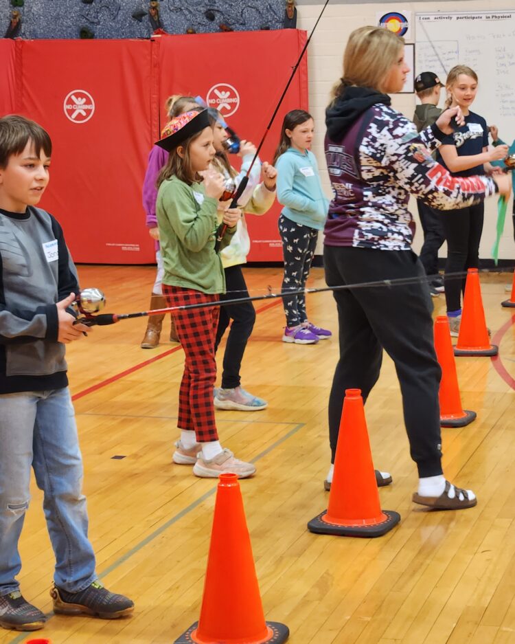Fishing educational stations included; casting safely and accurately, how to tie a Clinch and Palomar knot and fish identification which was hosted by the Winneconne High School Fishing team and Captain Greg. All you saw where smiles as the students completed a knot or caught a Backyard Bass. When students were asked ‘What was their favorite station?’. Students basically were split between all the stations!!