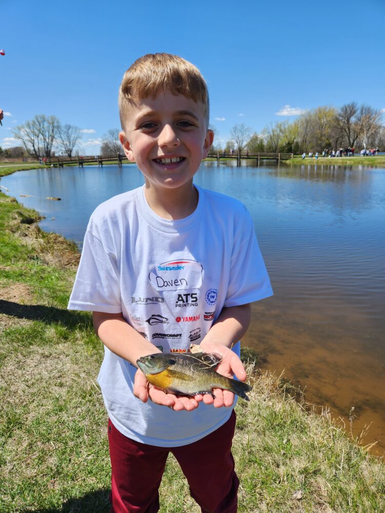 Next, Captain Greg asked if they were ready to go fishing in the afternoon and they all yelled ‘YES’!!!!! The first group of third graders were bused to Marble Park which was located about a mile away from the school. They then fished for about an hour and fifteen minutes. Due to the previous days wind and cold made fishing tough. Perch, bluegill and crappie were caught by a few of the students. The High School Fishing Team was excited as students asked them to sign their NPAA Future Pro shirt while they were fishing. The students were sad when the teachers said it was time to go back to school. Just as quick we had the next group of third graders ready to go fishing!!